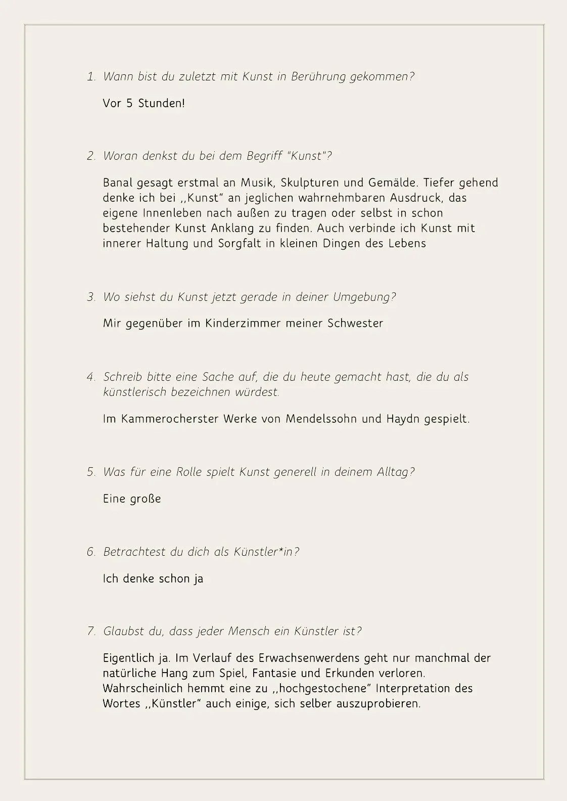 Mein Projekt begann mit diesen Fragen und entwickelte sich zu einem Austausch mit anderen über die Rolle und Wahrnehmung der Kunst in ihrem Leben.